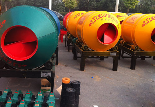 小滾筒式混凝土攪拌機(jī)_混凝土攪拌機(jī)屬于自落式雙錐反轉(zhuǎn)出料移動式混凝土攪拌機(jī),可攪拌塑性和半干硬性混凝土。攪拌筒正轉(zhuǎn)攪拌,反轉(zhuǎn)出料,每罐可攪拌350升混凝土(指搗實(shí)后混凝土體積),每小時可生產(chǎn)10~14立方米。適用于一般建筑工地、道路、橋梁工程和中小型混凝土構(gòu)件廠。小滾筒混凝土攪拌機(jī)固定攪拌時,可挖地坑,使料斗口與地面平齊,進(jìn)料方便,大大減輕勞動強(qiáng)度。(這種小型滾筒混凝土攪拌機(jī)多為沒有自動上料系統(tǒng))。